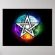 Pentagrama luminoso desenhado artificialmente com cinco elementos mágicos, água, terra, fogo, astral, ar sobre fundo negro. Pentagrama Wiccan. Wicca