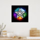 Pentagrama luminoso desenhado artificialmente com cinco elementos mágicos, água, terra, fogo, astral, ar sobre fundo negro. Pentagrama Wiccan. Wicca