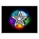 Pentagrama luminoso desenhado artificialmente com cinco elementos mágicos, água, terra, fogo, astral, ar sobre fundo negro. Pentagrama Wiccan. Wicca