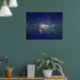 Tamanho recomendado para ajustado de um quadro padrão: 24 x 18 polegadas (tamanho original: 30 x 15 polegadas a 300 PPI, 40,5 MP). Muitos outros tamanhos disponíveis. Clique em 'Personalizar!' à direita. Se nossa galáxia, a Via Látea, abrigasse sua própria versão das Olimpiadas, o título da estrela mais brilhante conhecida iria para uma estrela massiva chamada Eta Carina. No entanto, um novo corredor — agora a segunda estrela mais brilhante da nossa galáxia — foi descoberto no interior empoeirado e frenético da galáxia. Apelidada de estrela da "nebulosa de pedras", essa bola de gás brilha com a luz equivalente a 3,2 milhões de sóis. A campeã reinante, Eta Carina, produz o equivalente a 4,7 milhões de sóis no valor da luz - embora os astrônomos digam que essas estimativas são incertas, e é possível que a estrela nebulosa de Peony possa ser ainda mais brilhante que Eta Carina. Se a estrela Peony é tão brilhante, por que não se destaca mais nesta visão? A resposta é poeira. Esta estrela está localizada numa região muito empoeirada, empoleirada, repleta de estrelas. Na verdade, poderia haver outras estrelas super brilhantes ainda escondidas no fundo da multidão estelar. Os olhos infravermelhos de Spitzer lhe permitiram perfurar a poeira e avaliar o verdadeiro brilho da estrela da nebulosa de Peony. Da mesma forma, dados infravermelhos do Telescópio de Novas Tecnologias do Observatório Europeu do Sul, no Chile, foram parte integrante no cálculo da luminosidade da estrela da nebulosa de Peonia. A nebulosa de Peony, que circunda a estrela nebular de Peony, é a nuvem avermelhada de poeira dentro e ao redor do círculo branco. Este é um composto de três cores que mostra observações infravermelhas de dois instrumentos do Spitzer. O azul representa luz de 3,6 mícrons e o verde mostra luz de 8 mícrons, ambos capturados pela câmera do array infravermelho do Spitzer. O vermelho é a luz de 24 mícrons detectada pelo fotômetro de imagem multibanda do Spitzer. Crédito: NASA/JPL-Caltech/Potsdam Univ