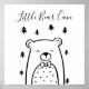 ©2020 copyright, Dio Perez. Urso pequeno na floresta vestindo uma gravata arco. Leitura de texto: Pequena Caverna do Urso
