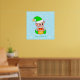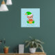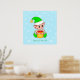 Pequeno ajudante de Papais noeis bonitos segurando uma caixa de presentes em Poster azul-claro. Pequenos elfos trazem alegria e magia para o Natal!