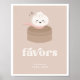 Boho Favors Sign apresentando um adorável Dumpling Kawaii Bao complementado por uma paleta de cores neutras e a tipografia retrô.