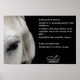 Pequena Poster com um cavalo branco e uma citação de Anna Blake sobre gratidão por cavalos.