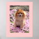 Pomeraniano com Flores Rosa por Animais Frescos. Pomeraniano bonito chamado Marley sentado entre um campo de flores cor-de-rosa. Fotografia tirada por Sequin Dreams. Design no tamanho do papel poster de 12" X 16" A cor de fundo rosa de 12" pode ser alterada.