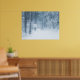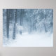 Fotografia paisagística de uma floresta mágica de inverno nevada.