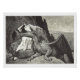Desenho de uma donzela medieval ou rainha com cabelo comprido e um vestido fluido, sentado na base de uma montanha com um dragão de estimação com asas colocadas no colo. À distância, um veleiro é ancorado num porto enquanto um marinheiro sobe as rochas para pegar um vislumbre do dragão e da donzela.