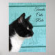 Tuxedo Kitten preto-e-branco, meu gato, contra fundo azul-lacre