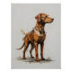 Vista de perfil de um cão amigável, representado em formas geométricas de abstrato simplificadas. Os tons úmidos da terra são colocados em camadas orgânicas, em forma montada, conferindo um caráter minimalista, mas expressivo. Sombreamento sutil adiciona profundidade, posicionada sobre um fundo branco limpo para uma sensação contemporânea e lúdica.