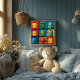 Uma peça de arte encantadora e divertida com nove personagens de cactos fofos, perfeita para alegrar o quarto de qualquer criança. Cada cacto vem com sua própria expressão divertida e cores vibrantes, criando uma atmosfera alegre. Ideal para berçários ou espaços infantis, essa obra de arte caprichosa adiciona um toque animado com sua grade colorida de adoráveis plantas do deserto. Personalize o ambiente com essa impressão divertida e amigável, tornando qualquer espaço mais atraente e vibrante. Adequado para crianças que amam personagens alegres e coloridos com um toque de charme do deserto.