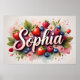 Celebre a doçura e o charme com este pôster personalizado com o nome Sophia em elegante letra 3D, rodeado por frutas vibrantes em aquarela e elementos florais suaves. Morangos suculentos, mirtilos, framboesas e delicadas flores se unem em um arranjo botânico sonhador — perfeito para berçários, quartos infantis ou presentes de aniversário.