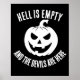 O rosto de abóbora-de-lanterna preto-e-branco do Halloween, com uma citação personalizada: "O inferno está vazio, e os demônios estão aqui." - William Shakespeare (A tempestade).