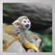 Um macaco de esquilo muito bonito se agarrando às costas da mãe.
