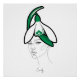 The design features a minimalist line-art face crowned with graceful snowdrop flowers—the birth flower of January representing hope, purity, and new beginnings. The flowing one-line illustration style creates modern elegance, while the pristine white petals and fresh green leaves capture winter's quiet beauty.