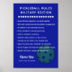 This bold dark blue personalized name military edition pickleball rules poster features crisp white text and green pickleball graphics, laying out ten humorous military-style rules for competitive play. Designed for clubs, tournaments, and pickleball-loving households, it sets the tone with discipline and wit. Whether you're gifting a coach, decorating a court, or surprising a fan, this wall art brings structure and style. The clean layout and retro vibe make it perfect for sporty spaces. Pickleball family rules poster for your club wall or tournament signage.
