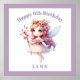Make her birthday truly magical with this enchanting, fully customizable fairy design. Featuring a sweet, wide-eyed fairy princess with a floral crown and delicate wings, this artwork is designed to be a one-of-a-kind keepsake.