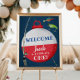Sinal de boas-vindas de aniversário com um tema de pesca adorável. Personalize com suas informações ou clique em "clique para personalizar mais" para ajustar o tipo de fonte, o tamanho e a cor.