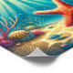 Aqui está uma ilustração brilhante e vibrante de uma estrela do mar que repousa no fundo arenoso do oceano, cercada por coral e iluminada por luz solar suave e filtrada que flui através da água.