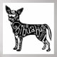 Uma bela ilustração desenhada de uma silhueta de cão chihuahua com letra de rabisco artístico e dentro de texto.