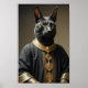Um gato negro real, enfeitado em ouro e vestido com o traje de um antigo faraó egípcio, espanta com um ar de mistério e sabedoria. Este retrato digital captura a majestade do felino e a opulência da corte faraó.