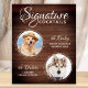 Signature Cocktails vindo de seus animais de estimação! Inclua seu melhor cachorro, melhor gato e qualquer animal de estimação no seu casamento com seu próprio bar de bebida para seus hóspedes. Perfeito para amantes de cães, e um bar especial de cães será um sucesso no seu casamento. Madeira simples, mas rústica, branca com folhas de eucalipto pretas. Personalize esta placa de casamento de estimação com suas fotos favoritas de cachorro, gato, cachorro ou gatinho, nomes e bebidas de assinatura!. COPYRIGHT © 2020 Judy Burrows, Black Dog Art - Todos Os Direitos Reservados. Bar Pet Wedding Signature Cocktails Beber Poster