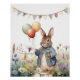 Peter o coelho na sua jaqueta azul com balões coloridos e flores silvestres