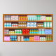 A well stock pharmacy shelf with lots of medicine. This design looks really effective on these Poster