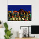 Estilize sua casa com a arte de tendências. Este trabalho mostra a cidade de Phoenix, Arizona coberta de grafite. Altere a cor de fundo para um efeito noturno ou diurno na seção personalizada.