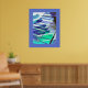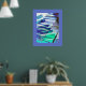 A wall poster on a music theme, featuring an abstract picture based on a classic piano keyboard. With blue, turquoise and white keys forming mirroring and shadows, this is an atmospheric picture to bring a musical touch to your wall.