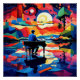 A.I.criada impressão de cena vibrante mostra uma pessoa tocando piano contra um céu noturno estrelado e mesmerante sobre um cubista colorido, a paisagem surreal inclui colinas rolantes, árvores e um lago refletindo os corpos celestes luminosos do céu