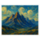 Esta peça reimagina a grandeza de uma cordilheira através de lentes vivas e emocionais do estilo de Vincent van Gogh. Os picos agudos e amordaçados subem dramaticamente no céu, embrulhados em nuvens girando que ecoam a energia inquieta do mundo natural. A escova cheia de movimento captura tanto a solidez das montanhas como a atmosfera fugaz e sonhosa de névoa e vento.