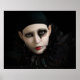 Gráficos informáticos 3D de um Pierrot com coleira de penas preta