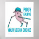 Handgezeichnete Illustration eines glücklichen Schweins auf Ski mit dem Spruch "Piggy enjoys your vegan choice".