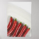 Vista de alto ângulo de cinco pimentos de pimenta vermelha em uma placa. Copyright: imagens brilhantes