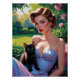 Pôster Pin-Up em Primavera com Gatinho Preto Bonito