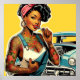 Poster Pin-up mecânico tatuado