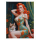 Esta ilustração cativante apresenta um pino vermelho glamouroso com cabelos ondulantes e nojentos, exuando o fascínio vintage. Ela veste um vestido teal que se adapta à forma adornada com flores laranja vibrantes, complementado por brincos elegantes que acrescentam um toque de sofisticação. Ao lado dela, senta-se um charmoso gato com uma expressão serena, vestindo uma coleira com um pingente. O pano de fundo é uma mistura de cortinas lacrimogêneas e flores florescentes em tons de laranja e vermelho, criando um rico e retrorâmbio.