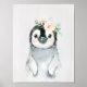 Poster Pinguim Bebê Floral em Aquarela, Animais Nevados