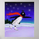 Um skate de pinguim num lago congelado numa noite estrelada.