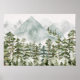 Poster Pinheiros Floresta e Montanhas Aquarela