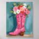 Poster Pink Cowgirl Boot Flower Bouquet Watercolor