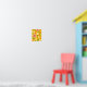 The design contains large pink flowers with soft rounded petals and a dark dotted center, surrounded by smaller flowers in orange and light cream colors. Slender branches with smooth green leaves connect the floral elements and add a natural flow. Small circular dots are scattered throughout the design, giving a light and cheerful touch. The background is a bright yellow tone that enhances the warm colors of the flowers and leaves. The overall style is simple and friendly, using flat shapes and clean colors to create a lively floral pattern.