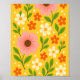 Poster Pink, cream & Orange Flowers with Green Leaves