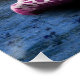 Ein außergewöhnlicher surrealer Blickfang einer pinken Giraffe wie sie des Nachts in der Steppe liegt.