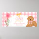 Celebrate your little one’s golden year with this charming “One Golden Year” first birthday poster banner! Featuring an adorable golden doodle puppy wearing a pink gingham bow, sweet matching balloons, and a cheerful yellow ribbon accent, this personalized birthday poster banner is the perfect finishing touch to your celebration.