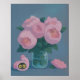 A dreamy floral artwork featuring a bouquet of pink peonies with a playful twist — a pair of glowing cat eyes peeking out from a pink slipper beside the vase. This Ghibli-inspired scene brings a magical touch to any space, perfect for cat lovers and fans of cozy aesthetics.