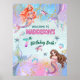 Poster Pink Purple Glitter Mermaids 7th Birthday Welcome
