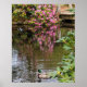 Dress up a wall with this poster print that features a photographic image of pink Rhododendron blooms reflecting on the surface of a pond along with mallard duck. Customize your poster size as desired along with other options.
