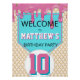 Pôster Pink Turquoise Baseball Drip Birthday Welcome Sign
