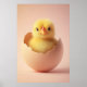 Um pintinho amarelo liso com uma expressão adoravelmente feroz sai de uma casca de ovo rachada contra um fundo pastel macio. Perfeito para temas de Páscoa, produtos para bebês ou branding lúdico.